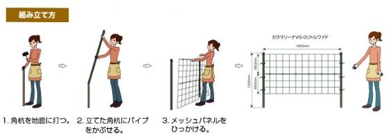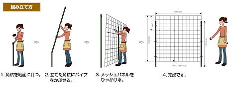 フェンスにしたいところに専用の杭を打ち込んでセットするだけで簡単にご使用できます。